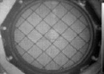 触媒のコーティング量にもよりますが、正常だとフィルターの格子状が均一に映りますが、欠損していたり割れている箇所があると光漏れでその箇所が白く映ります。